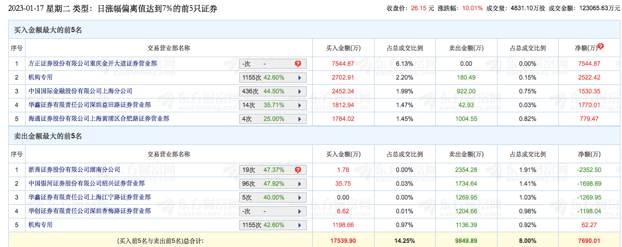 通达动力龙虎榜数据,截图自东方财富