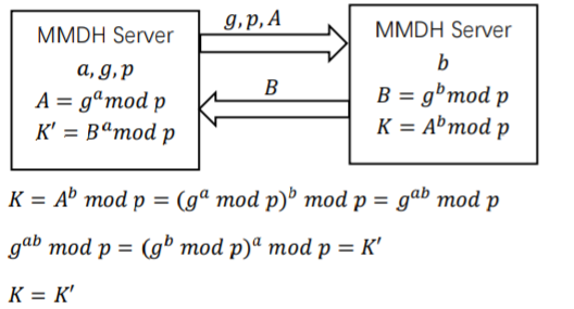 2. 加密算法采用 DH 协商对称加密的共享密钥,具体过程如下