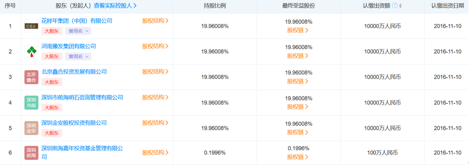 工商信息显示,前海境界基金总出资额为5.01亿元,实缴资本2.71亿元,基金共有5家LP,每家均认缴1亿元,实缴5000万元。其中花样年集团也是LP之一。
