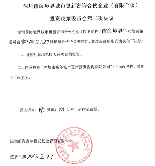 按约定,前海境界基金将定向投资于深圳大运项目。