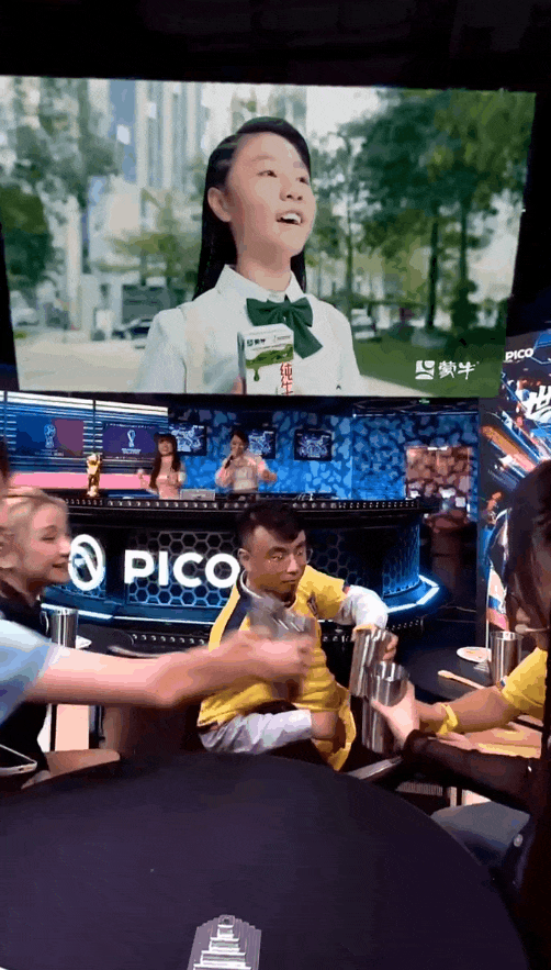 在世界杯揭幕战当天,柳岩以惊喜球迷身份加盟Pico直播,现场环境类似在酒吧中看球,Pico用户除了能够一起参与互动外,还可以选择观看位置坐在柳岩身边。