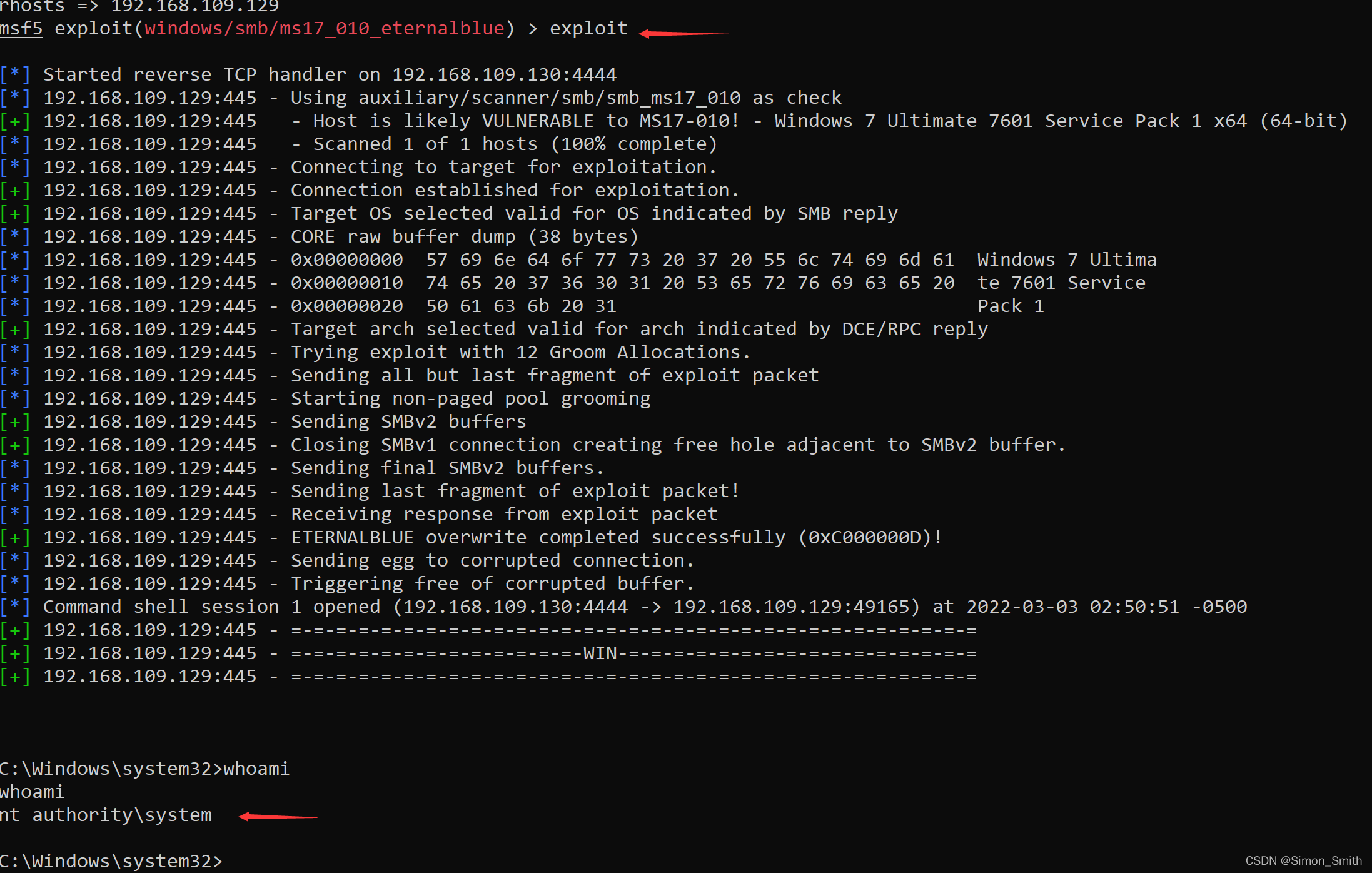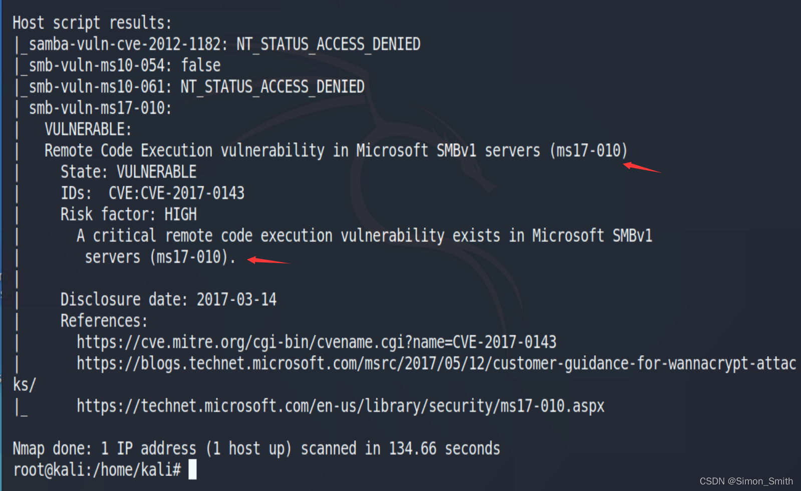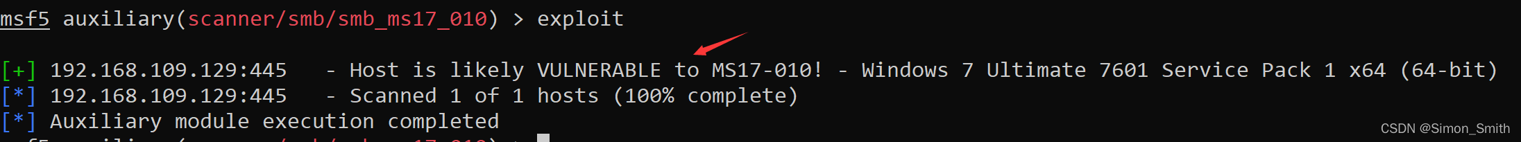 1.在黑客机器中对目标计算机进行端口的扫描 发现目标445端口处于开放状态