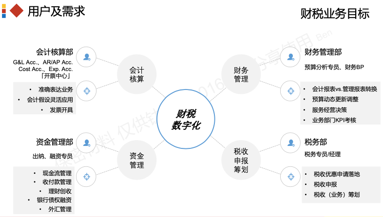 在财税领域里,我们从甲方企业的财务职能以及财税有关的业务目标展开。