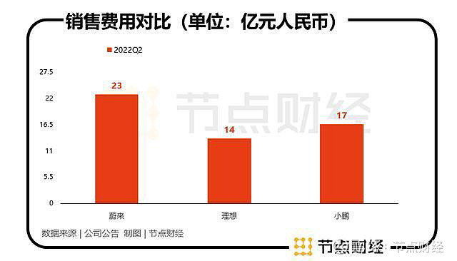 同时,蔚来还是“蔚小理”中销售费用最高的,其销售费用约是小鹏和理想的1-2倍左右。