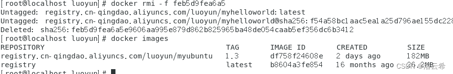 运行:docker rmi -f 镜像ID 删除掉镜像。