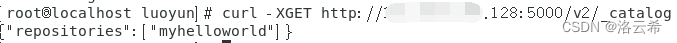 curl -XGET http://Linux的ip地址:5000/v2/_catalog 可以看到,目前私服库没有任何镜像上传过。