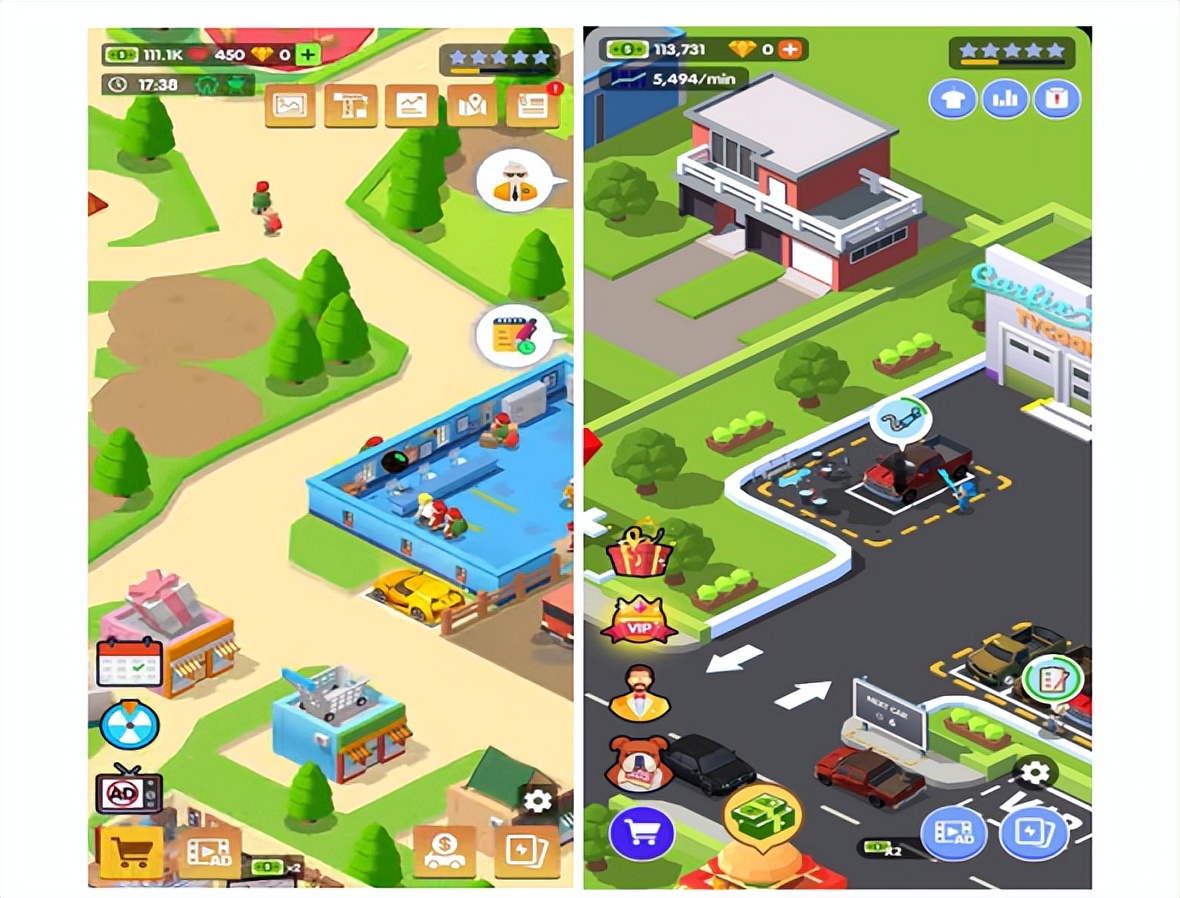 左:《Car Fix Tycoon》;右:《Camping Tycoon》