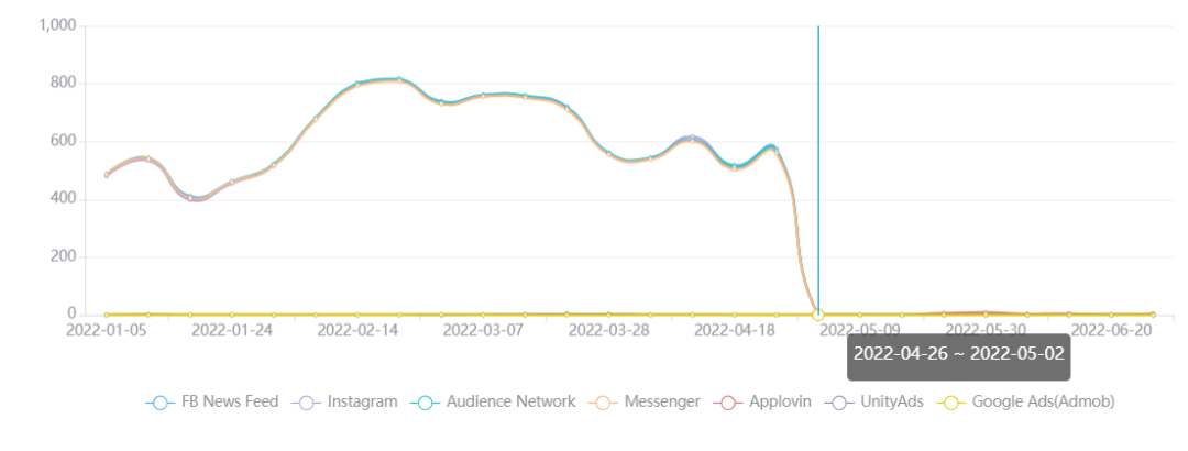 《Camping Tycoon》安卓端广告近半年投放曲线 | 图片来源:广大大