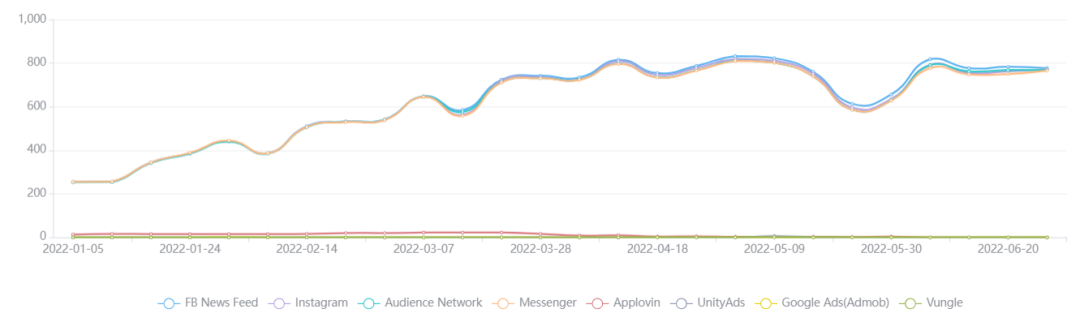 近一年来,在点点互动《菲菲大冒险》的优秀示范下(Sensor Tower 显示 6 月份全球双端流水 500 万美金),出海厂商纷纷在模拟经营赛道展开了尝试。在广大大近日发布的《2022 模拟经营手游全球营销洞察》中,笔者观察到近半年全球模拟手游投放 Top10 中,不乏大量的中小厂商,而这些产品的素材投放量颇为激进。