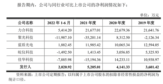 招股说明书显示,报告期内,碧兴科技同行业可比公司扣非后归母净利润的情况具体如下: