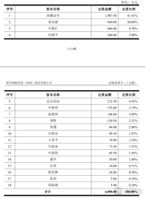 此后,西藏比兴、碧水源始终位列碧兴科技的前两大股东,截至招股说明书签署日,西藏比兴持股33.75%,碧水源持股16.3%,而何愿平通过直接和间接的方式合计控制碧兴科技53.78%的股份表决权,为实控人。