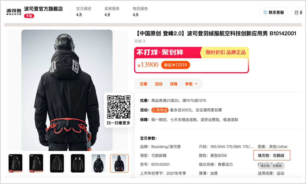 波司登将一个早已普及的技术,当成自己产品的核心卖点,卖出万元以上的高价,着实有些离谱。