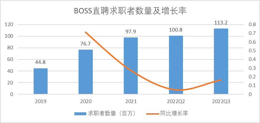 图: BOSS 直聘求职者数量及增长率,来源:招股说明书