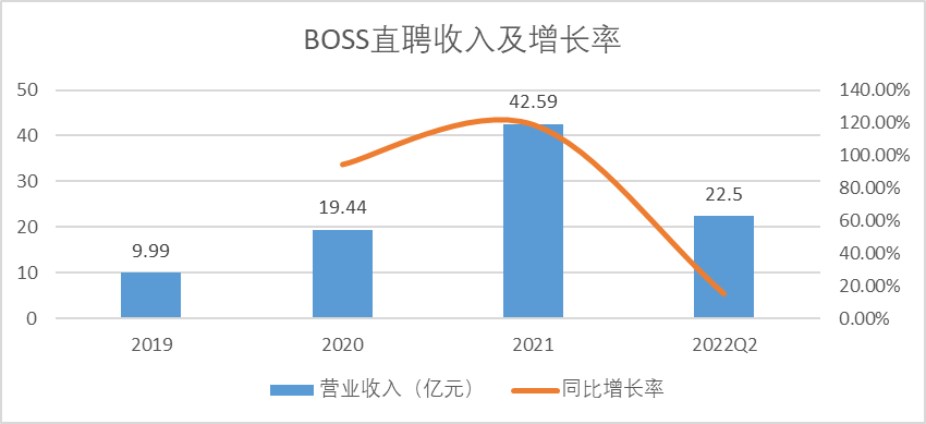图: BOSS 直聘收入及增长率,来源: Choice金融客户端
