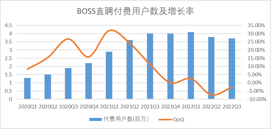 图: BOSS 直聘付费用户数及增长率,来源:招股说明书