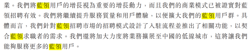 图: BOSS 招股书表明发力蓝领在线招聘市场,来源:招股说明书
