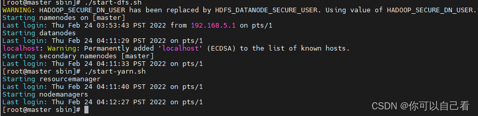 还要修改/usr/local/hadoop/sbin下的两个文件start-yarn.sh/stop-yarn.sh