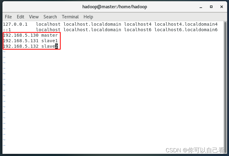 把原本的改为master(其他两台虚拟机是slave1和slave2)
