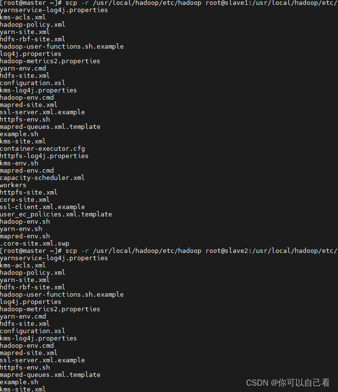 scp -r /usr/local/hadoop/etc/hadoop root@slave2:/usr/local/hadoop/etc/