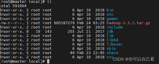 将下载好的hadoop压缩包上传至/usr/local目录下