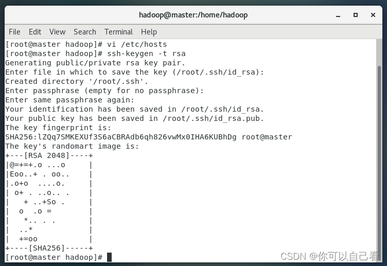 在三台虚拟机中都使用以下命令生成密钥。输入命令后一直回车。