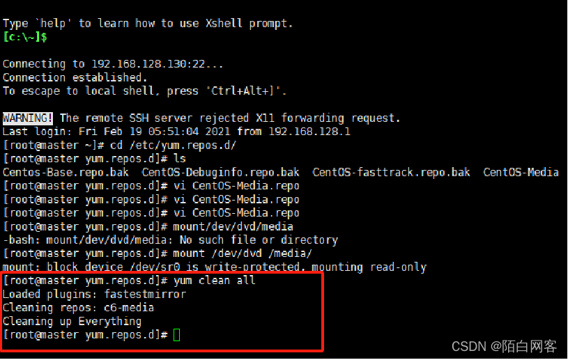 执行操作: 首先:先去挂载 yum 源,通过 mount /dev/dvd /media/