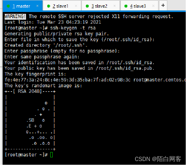 (1)使用ssh-keygen 产生公钥与私钥对。 通过 cd /root/.ssh/ 查看私有密钥和公有密钥文件。