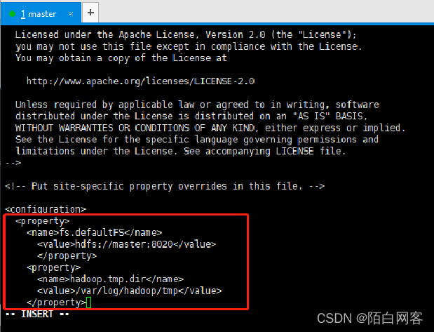 (6)修改slaves文件。该文件里面保存有slave节点的信息。 执行命令: vi slaves