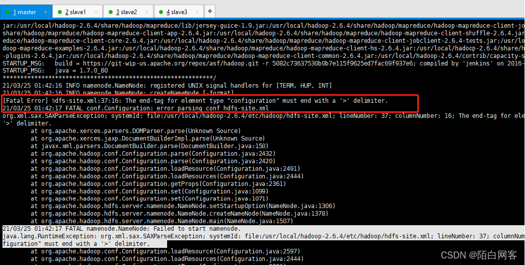 格式化执行命令:hdfs namenode -format 若出现 以下图,代表失败