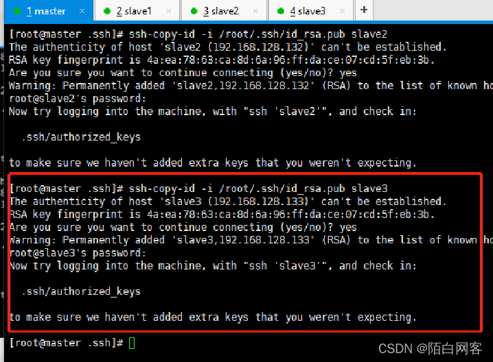 ssh-copy-id -i /root/.ssh/id_rsa.pub slave3