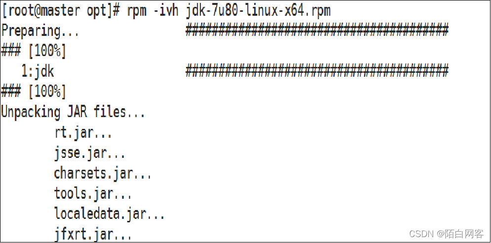 进入/opt目录,执行命令“rpm –ivh jdk-7u80-linux-x64.rpm”安装JDK