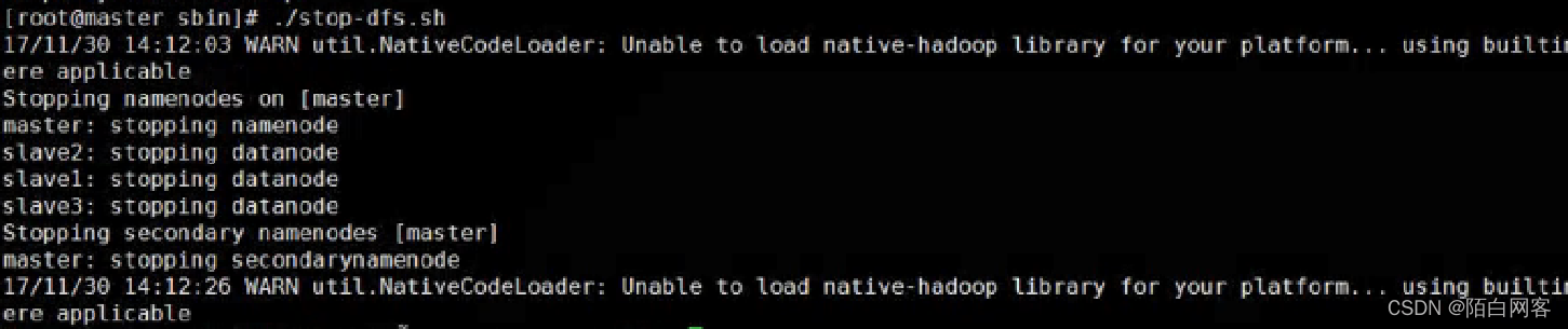 sbin/stop-dfs.sh //关闭HDFS相关服务