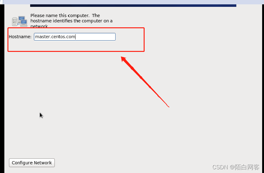 设置主机名为“master.centos.com”,然后单击下一步,继续。
