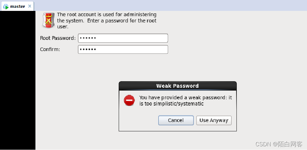 提示我们密码太弱,但是我们还是使用这个密码,选择 use anyway,确认。