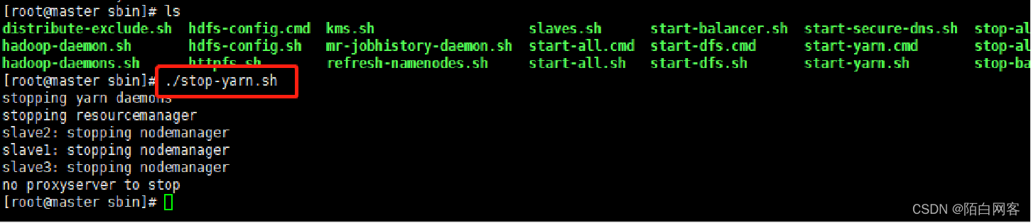 关闭集群也只需要在master节点直接进入hadoop安装目录