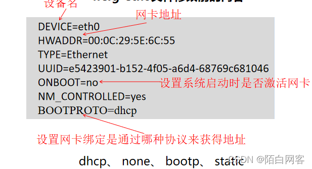 可以cat /etc/sysconfig/network-scripts/ifcfg-eth0查看修改内容