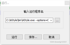 --options=C:\AStyle_astylerc:以文件的形式指定格式化的风格。文件会在下面提供,个人喜好不同,仅供参考。