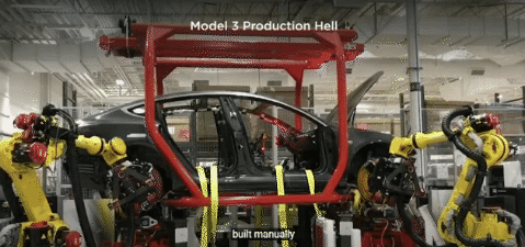 高度自动化的组装方式,在关于马斯克的各类采访中已经被提及多次。这里不过多赘述,一个小动图感受一下: