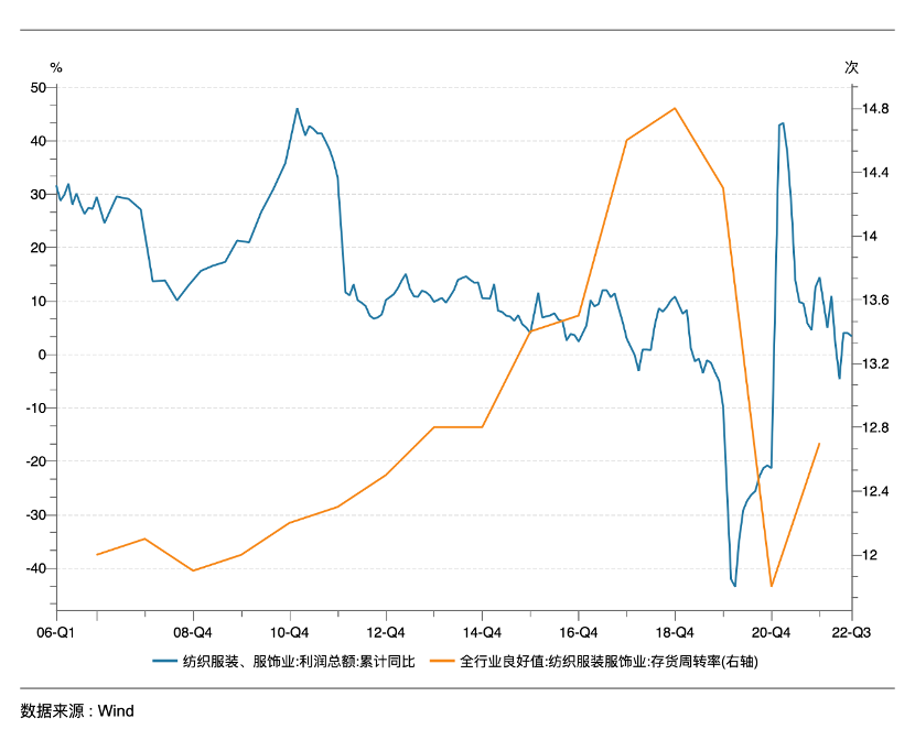 其二,2018年之后,行业利润迅速下行,由于服饰尤其是高端服饰具有极强的消费弹性,当消费预期收紧之时,其自然首当其冲,库存周转率也有了一轮特别明显的下行。