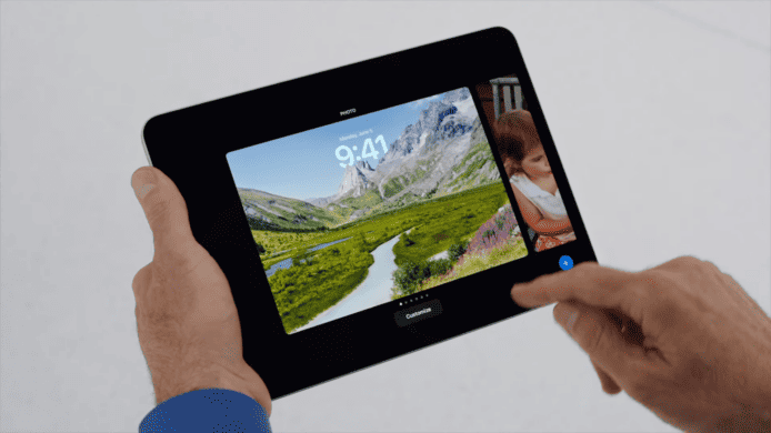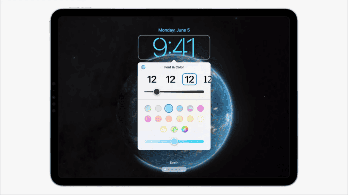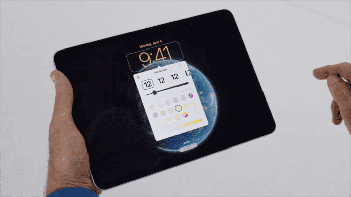 更新 iPadOS 17後, iPad 終於和 iPhone 一樣,可以自訂鎖定畫面(lockscreen)。用家除了可使用 Live Photo 作為鎖定畫面外,亦可調整顯示時間的字體。另外亦可在鎖定畫面加入小工具。