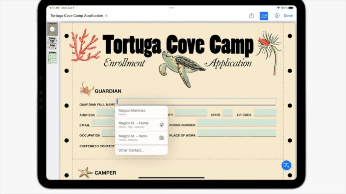 iPadOS 17 更新了讀寫 PDF 的功能。iPadOS 使用機器學習(Machine Learning)可識別 PDF 中的輸入欄,以便用戶可用 Auto-Fill 快速填寫表格。