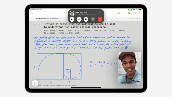 iPadOS 可同時使用 Collaborator 及 FaceTime 功能,讓用家能夠更方便地與同儕交流合作。
