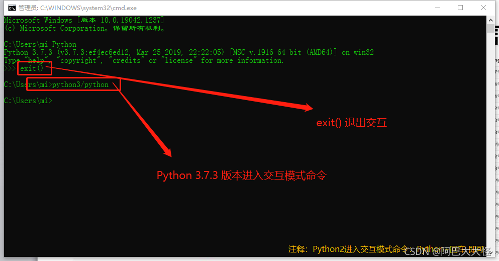 命令:Python3/python+回车(Enter) 即可 进入交互模式后 会有 >>> 箭头代表已经是交互模式了
