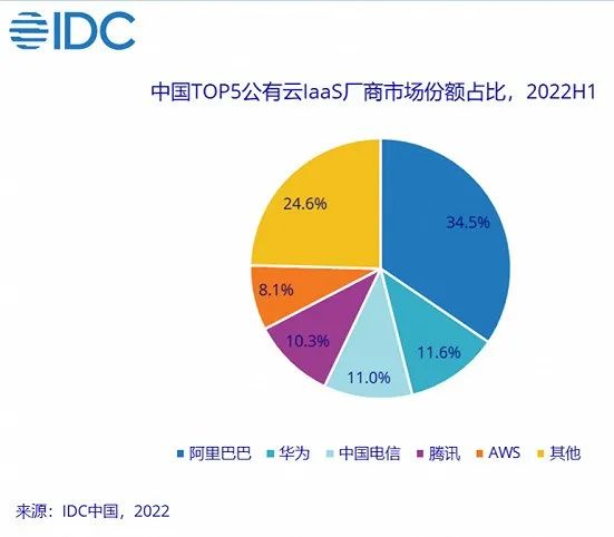 2022年10月26日,IDC发布的《中国公有云服务市场(2022上半年)跟踪》报告则显示,阿里云在IaaS市场份额减少4.1%至34.5%;IaaS+PaaS市场份额减少4.4%至33.5%。