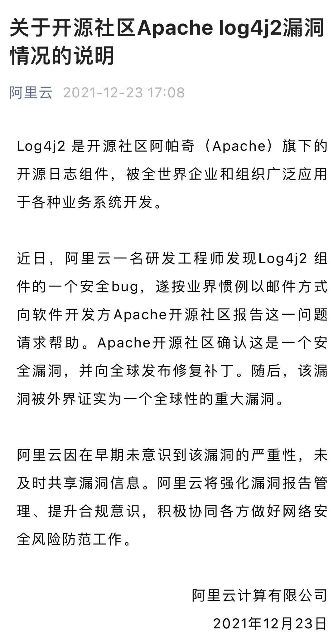不过这期间,飞速发展的阿里云也犯下不少大错。其中典型的就是log4j2高危漏洞事件。当时,阿里云发现漏洞后并未及时向上汇报,仅按照惯例通过邮件上报给了软件开发公司阿帕奇软件基金,导致国内在一个月之后才从公开渠道了解到这一漏洞情况。