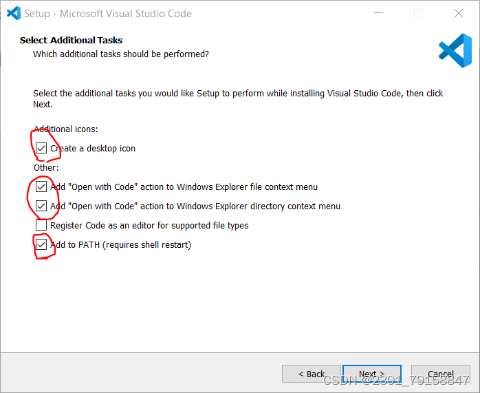 勾选图中的四个框,第一个框为VScode创建桌面图标