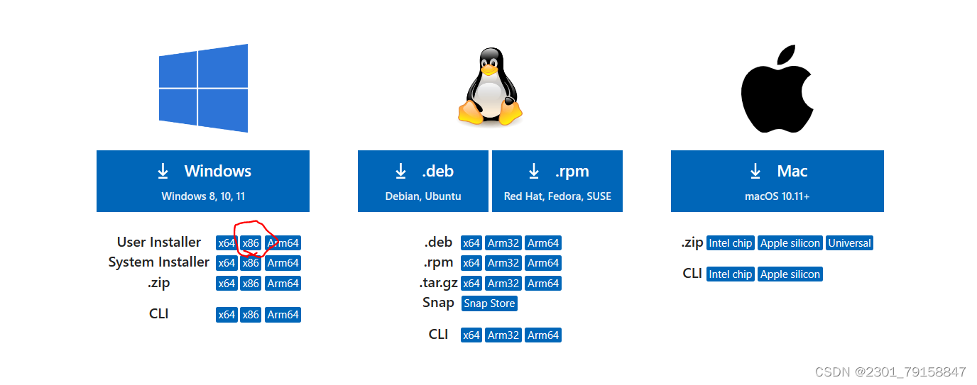 根据上文 (1)Ⅱ 中所示方法,进入上图2中的界面,在企鹅下面选择与自己系统相对应的版本即可