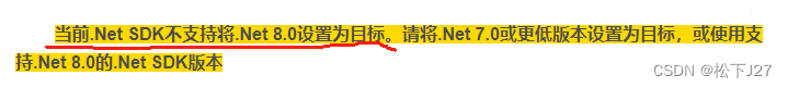 ** 当前.Net SDK不支持将.Net 8.0设置为目标。请将.Net 7.0或更低版本设置为目标,或使用支持.Net 8.0的.Net SDK版本**