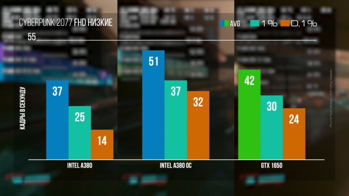经过测试,在启用Resizable-BAR和解锁功耗的情况下,Pro Hi-Tech可以让锐炫A380运行在55W的功耗水平,这也带来了让人印象深刻的图形性能提升。由此看来,英特尔锐炫独显驱动程序依然在兼容性和优化方面拖后腿,性能释放成为了限制英特尔独立显卡性能发挥的重要因素。