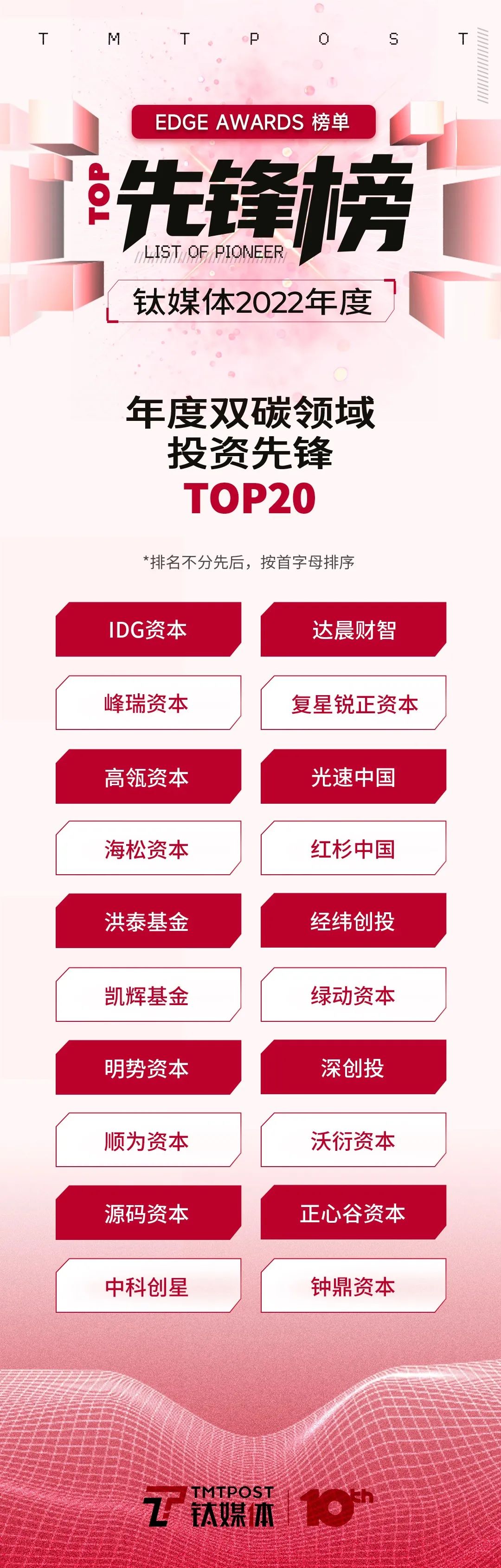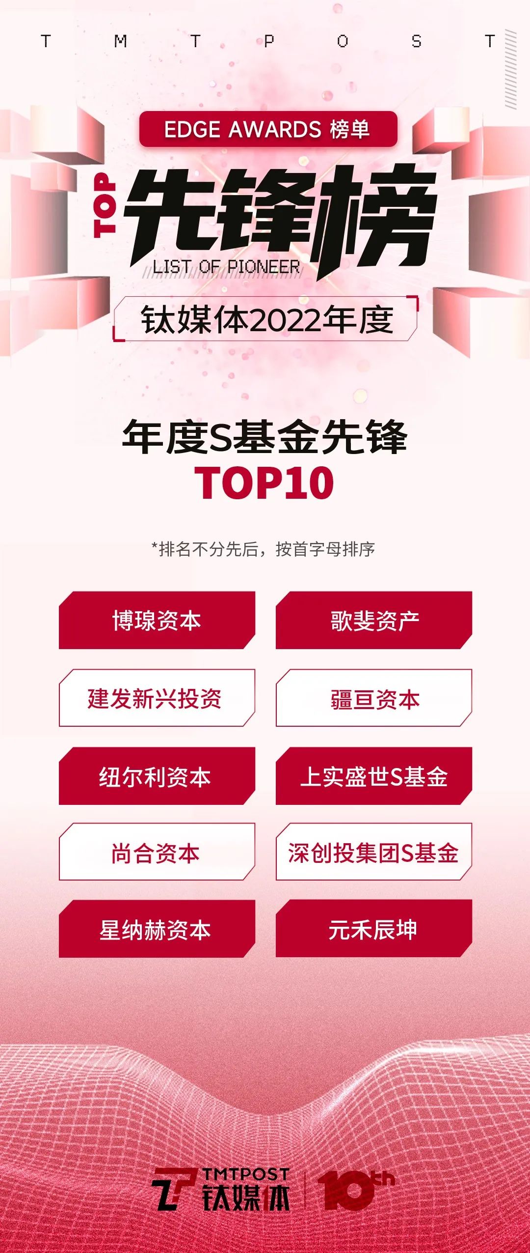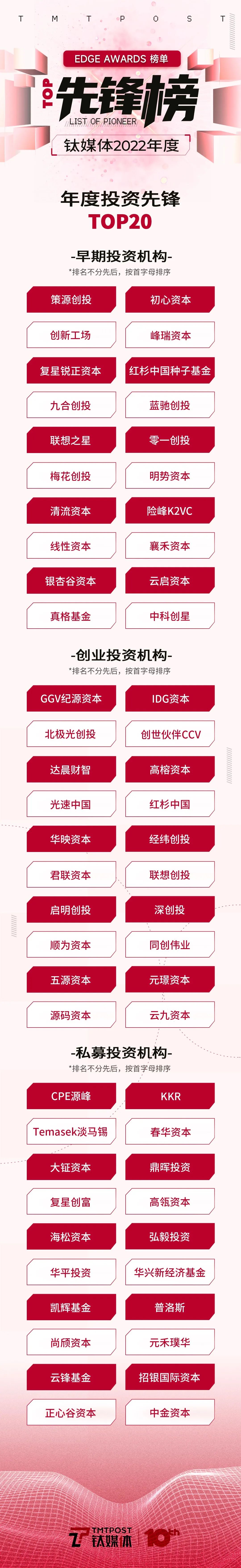 本榜单将揭晓,募、投、管、退先锋、S基金先锋、ESG先锋、CVC先锋、FA先锋,以及四大细分赛道,先进制造、医疗大健康、企业服务、双碳领域投资先锋。